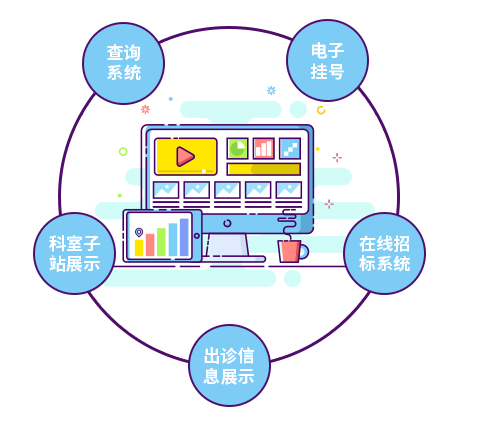 电子挂号:实现线上预约挂号功能,通过接口可实现与医院的HIS系统整合。